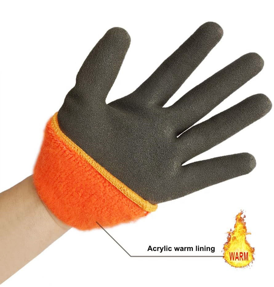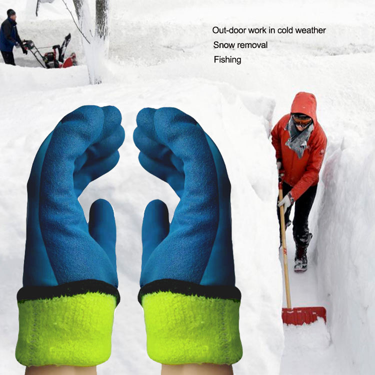 Waterproof Anti Slip Glove Terry Acrylic Lining Double Dipped Latex Coated For Cold Work