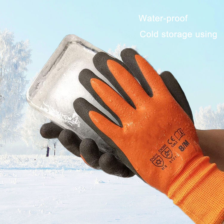Waterproof Anti Slip Glove Terry Acrylic Lining Double Dipped Latex Coated For Cold Work